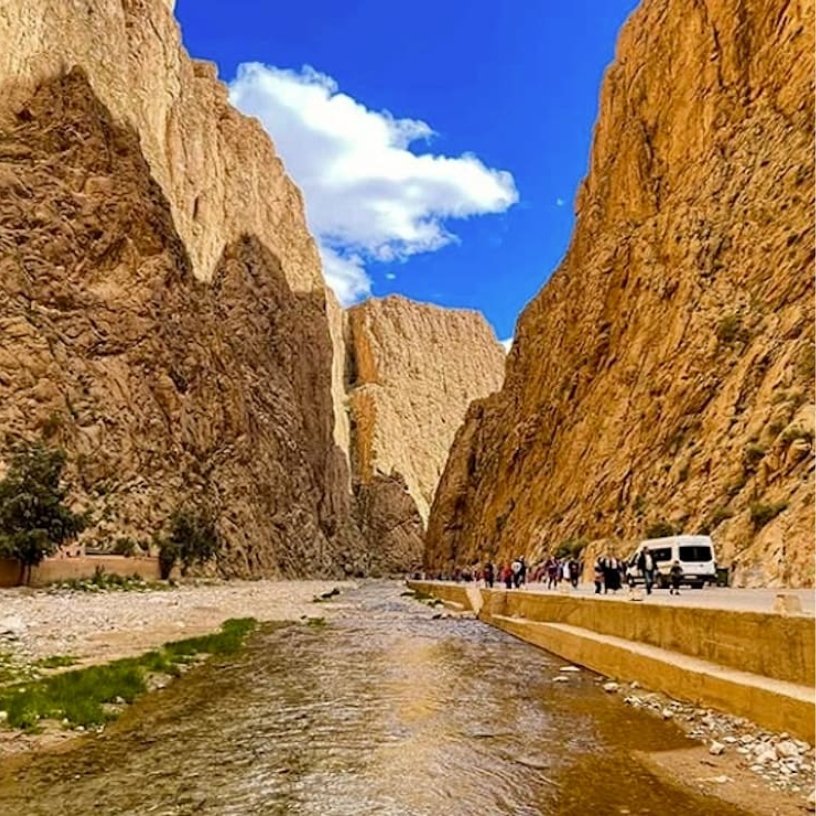 Poursuivez ensuite vers Tinghir pour admirer les impressionnantes Gorges de Todra, où des falaises de plus de 300 mètres se dressent de part et d’autre d’une rivière cristalline.