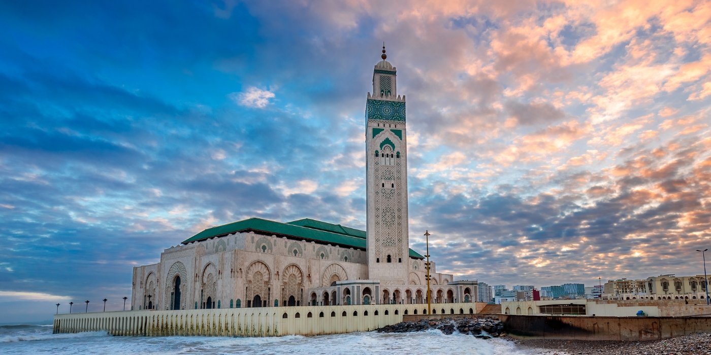 Arrivée à Casablanca et visite de la Grande Mosquée Hassan II. Découverte de la Place des Nations Unies, du Marché Central et de la médina historique. Exploration du quartier des Habous et balade sur la corniche d’Ain Diab.